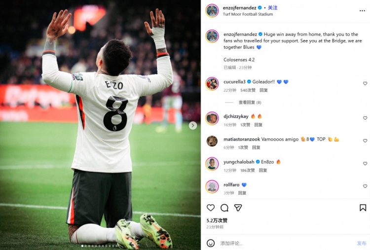 推射锁定胜局!恩佐社媒晒庆祝照:客场取胜,感谢远征球迷支持