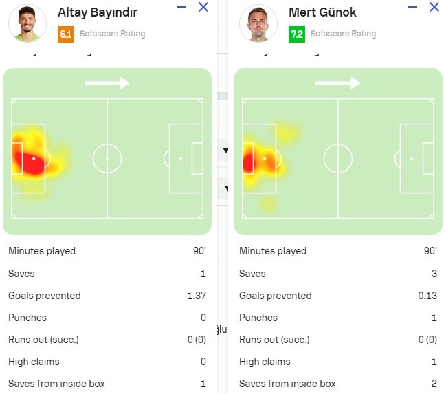 后者也最终和队友不够默契而导致丢球,数据统计显示巴因德尔全场仅1次扑救,他的存在导致土耳其少扑救了1.37球。