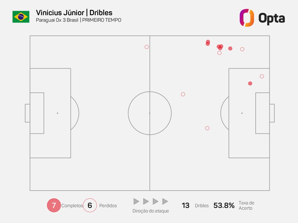 半场,维尼修斯2次射门2次射正2个进球,尝试13次过人成功7次,38次触球,丢失球权16次,评分8.6分。