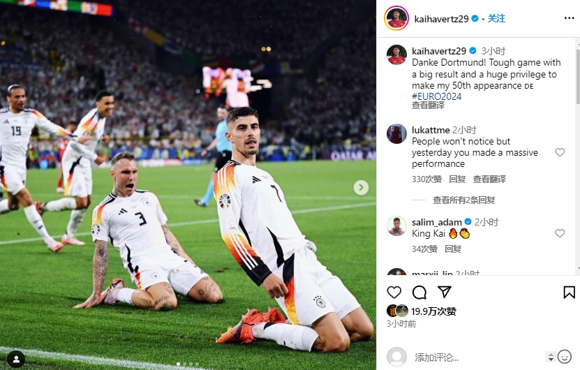 哈弗茨:对阵丹麦是艰苦的比赛,很荣幸迎来代表德国第50次出场