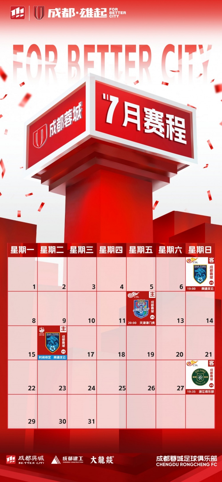 7月赛程来啦!请查收高清无水印手机、电脑的赛程壁纸,如有赛程变化,请以官方公告为准噢!