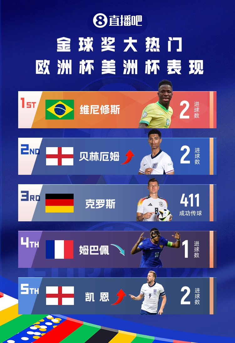 2024金球奖五大热门:贝林绝平⬆️姆巴佩0射正⏬克罗斯依旧超神