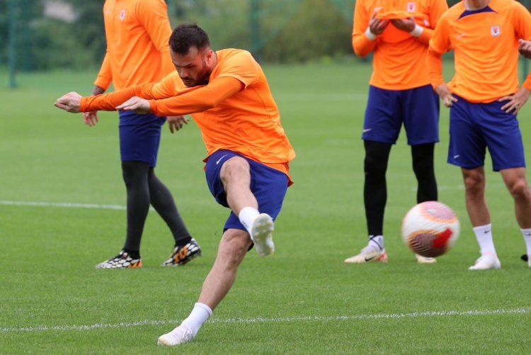 7月4日上午,山东泰山队在基地内完成出征前最后一练,训练内容以传接球和射门练习为主。出征客场的教练组和球员,中午从基地启程,前往上海。