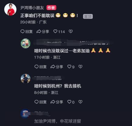 不过在足协确认海港对阵梅州客家的进球属于误判后,尹鸿博在舆论中也得以“平反昭雪”,因此众多球迷也纷纷留言,向尹鸿博表达了他们的支持。