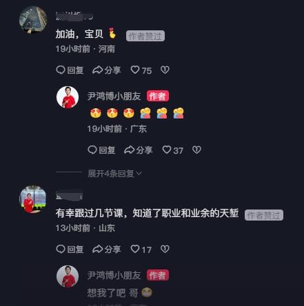 7月5日讯 昨天,尹鸿博更新社媒,晒出了自己训练的照片,众多网友在评论里留言向他表达了支持。