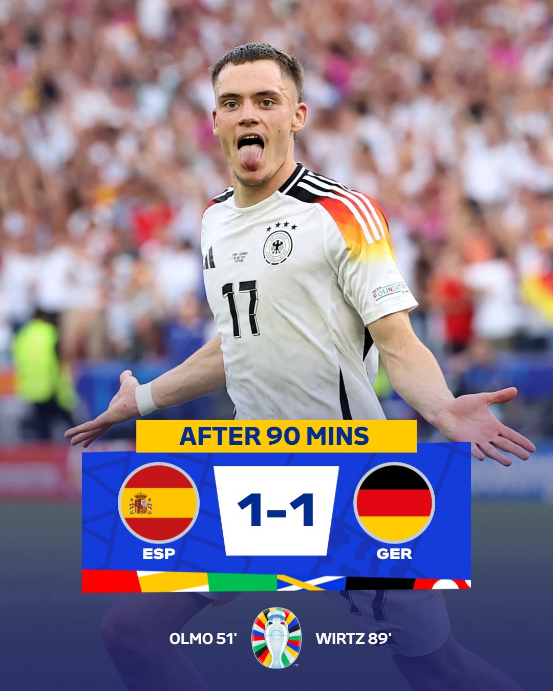 07月06日讯 欧洲杯1/4决赛,西班牙vs德国,比赛第89分钟,维尔茨破门扳平比分!而此次进攻的发起点是诺伊尔掷出的界外球。