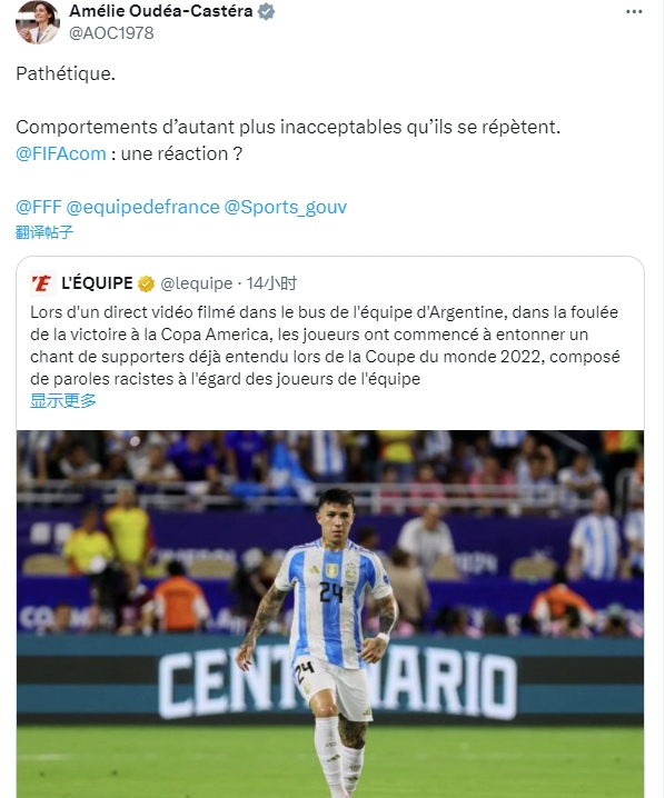 法国体育部长:阿根廷球员的行为让人无法接受,国际足联应有反应