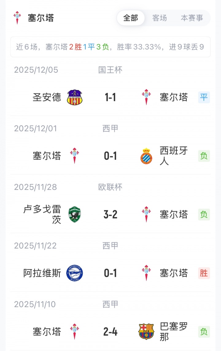 塞尔塔首发:13-拉杜、2-斯塔费尔特、32-哈维·罗德里格斯、20-马科斯·阿隆索、5-塞尔吉奥·卡雷拉、16-米格尔·罗曼、6-莫里巴、3-明格萨、18-巴勃罗·杜兰、15-萨拉戈萨、7-伊格莱西亚斯