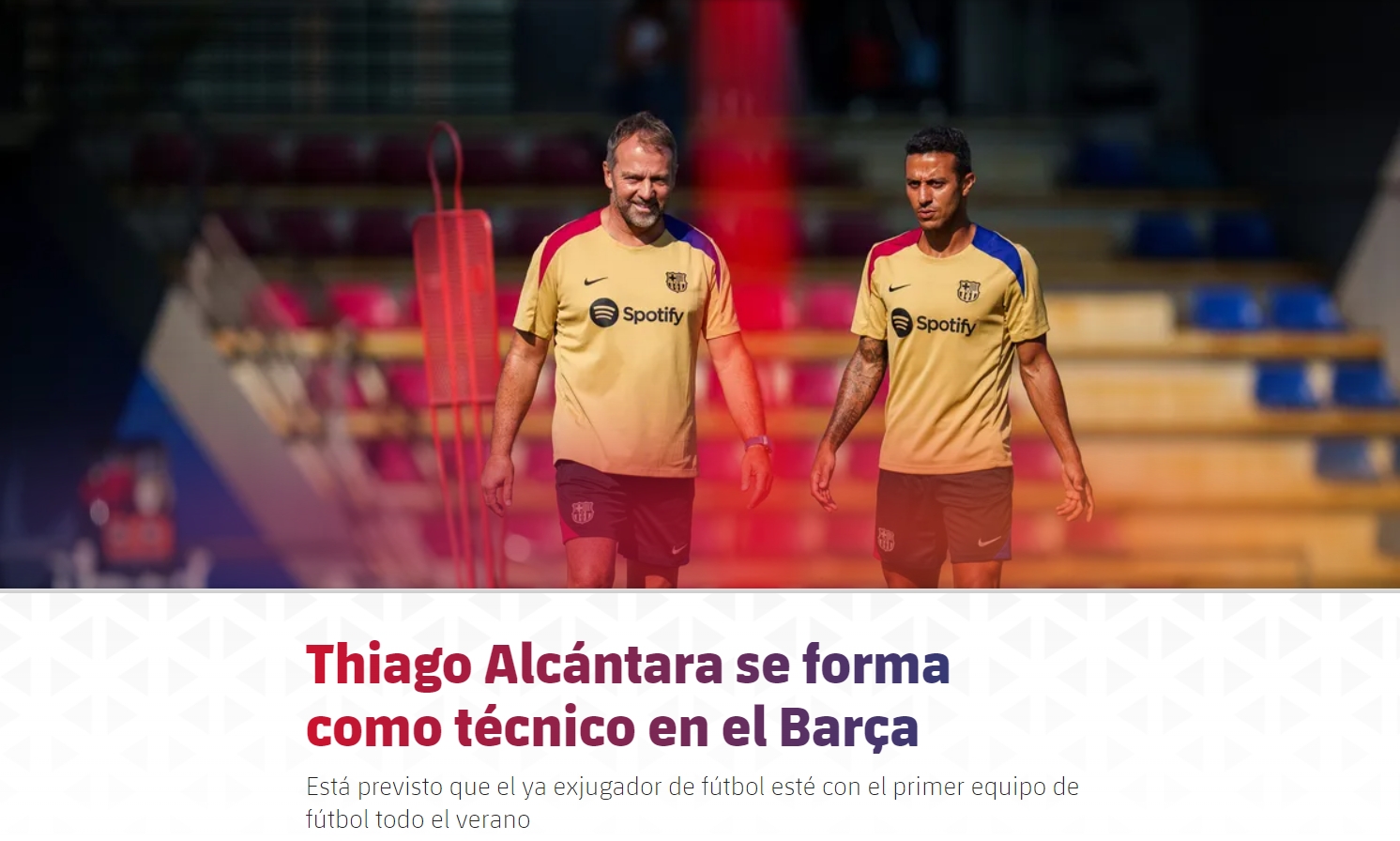 最近,33岁的蒂亚戈-阿尔坎塔拉结束了自己的球员生涯,他将在未来几周内加入汉斯-弗里克的教练组,接受教练培训。预计蒂亚戈整个夏天都将待在巴萨一线队内,因此也会参加巴萨的美国行。