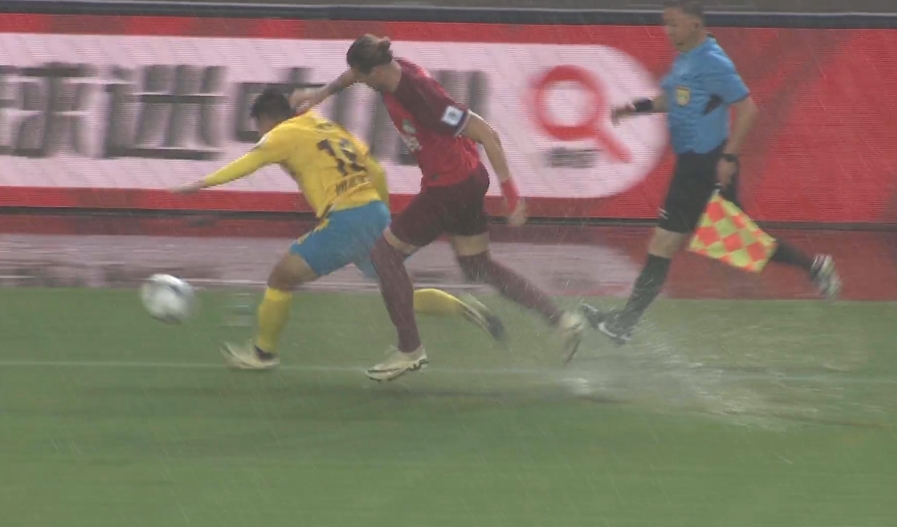 07月17日讯 足协杯1/8决赛,河南vs广西,由于河南大雨,场地积水严重,双方球员倒地时溅起了一阵水花。