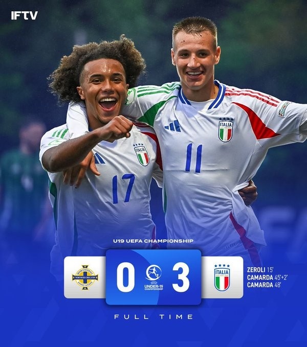 7月19日讯 今天,意大利U19在欧洲杯中3-0击败北爱尔兰,米兰青训小将卡马尔达梅开二度。