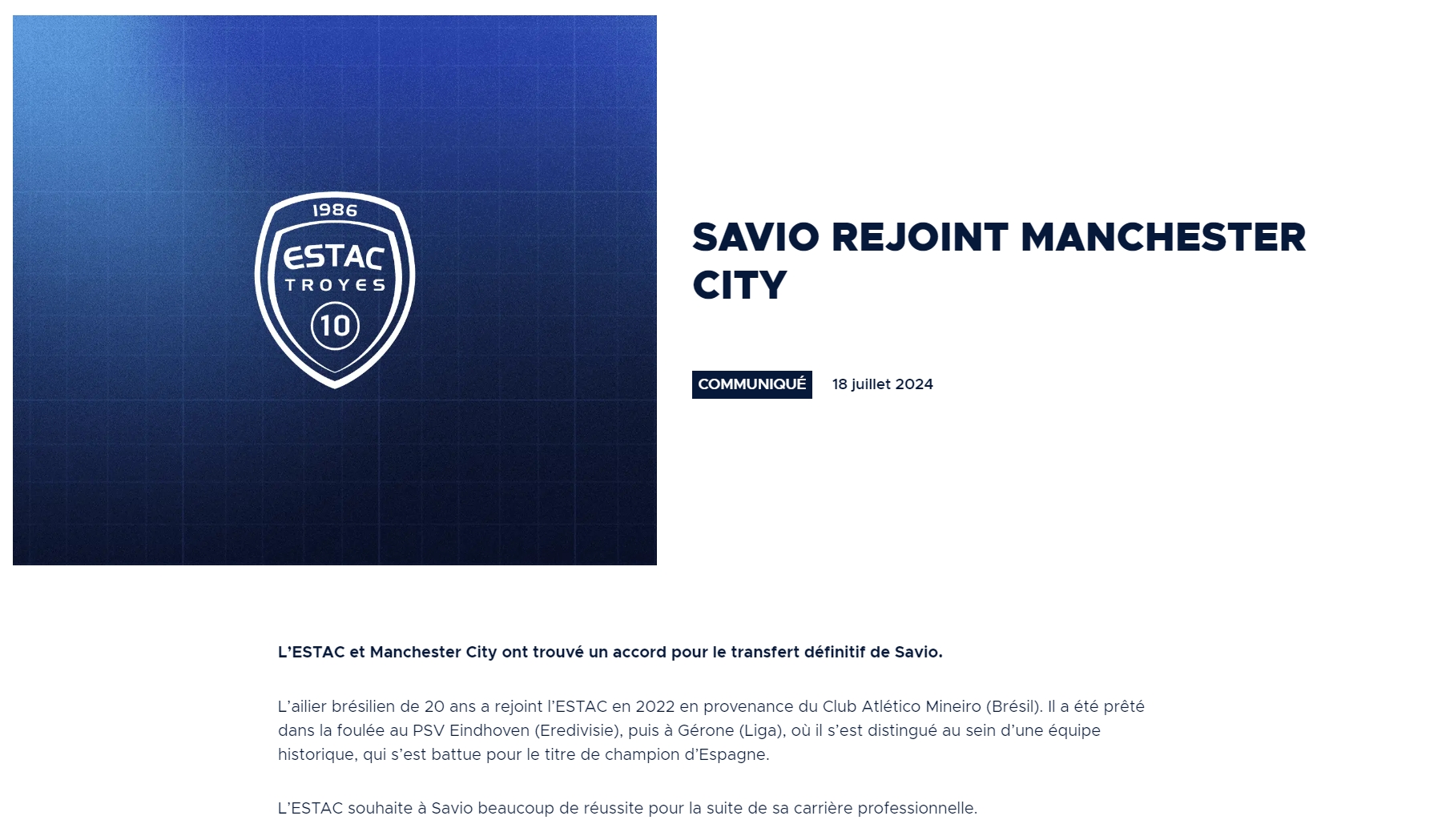 直至离队,萨维奥也没有为特鲁瓦出场过1次,更没有过亮相。俱乐部官宣萨维奥离队的公告也十分言简意赅。特鲁瓦目前已降至法国第三级别,他们与赫罗纳以及曼城均属城市足球集团旗下俱乐部。