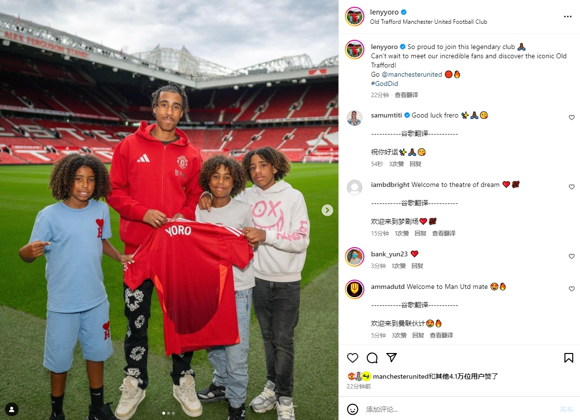 约罗:很自豪加入传奇俱乐部曼联,迫不及待想见红魔球迷