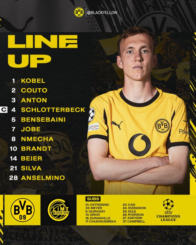 12月11日讯 北京时间今天凌晨4点,欧冠联赛阶段小组赛第6轮,多特主场对阵博德闪耀,多特此役首发已经公布。