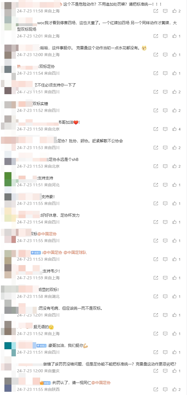 不少网友来到韦世豪社媒留言,表达了两种意见。有人认为韦世豪应该认错,而有人认为足协对于处罚是双标。