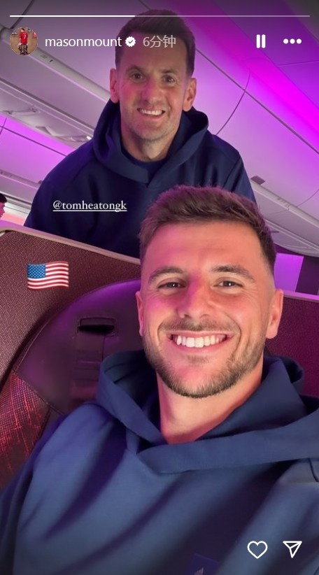 即将迎战枪手!芒特社媒晒照飞往美国