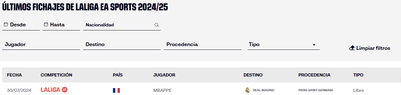 7月30日讯 据西甲官网显示,皇马新援姆巴佩完成注册。