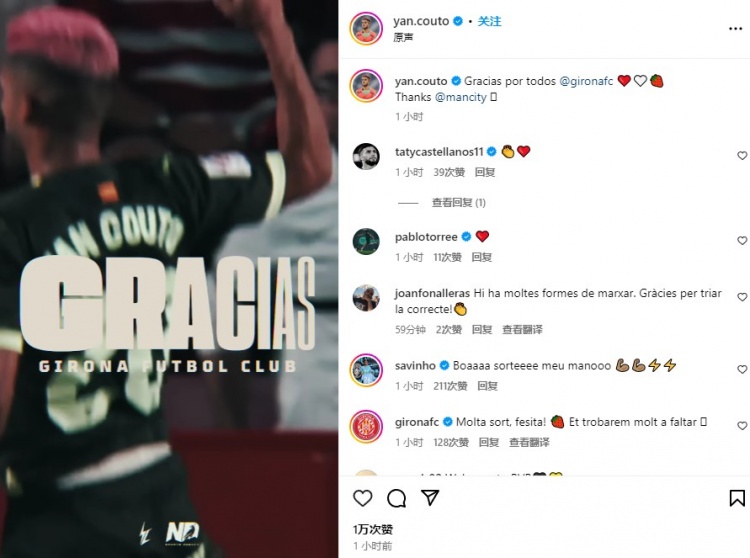 巴西22岁右后卫扬-库托社媒告别曼城&赫罗纳,纪念加盟多特