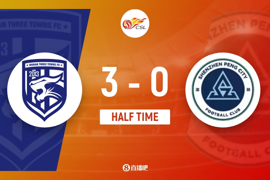 上半场比赛结束,武汉三镇3-0深圳新鹏城。
