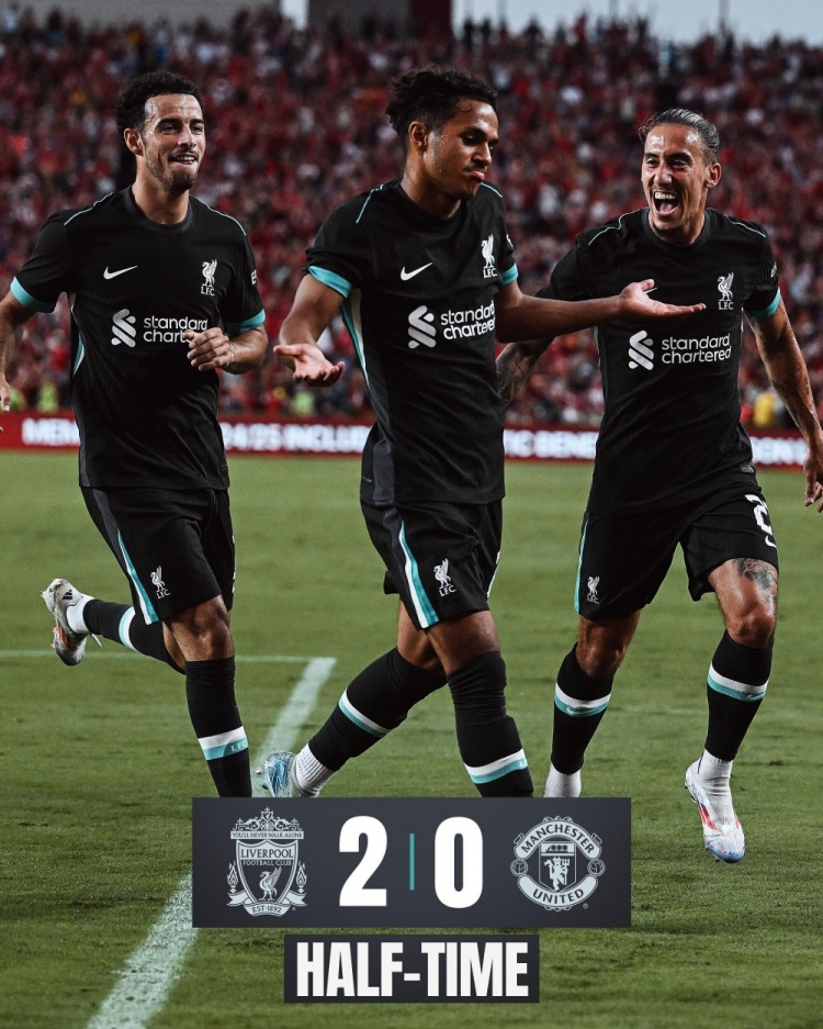 半场-利物浦暂2-0曼联 法比奥-卡瓦略连场破门萨拉赫助攻琼斯建功