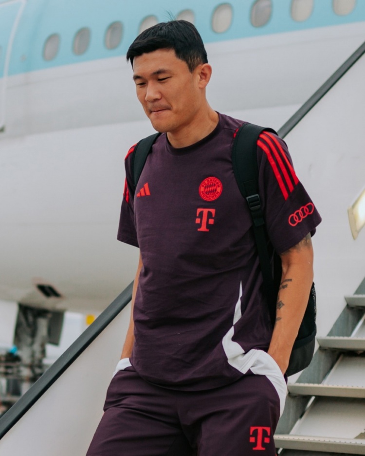 拜仁结束韩国行,返回慕尼黑,拜仁官方账号在社交媒体上晒出穆勒、金玟哉等球员走下飞机的照片。