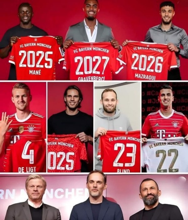 在这样的情况下,用半拆队的方式来“换血”(不只是一个夏窗),着实有点太过于激进。下图中从管理层和教练的卡恩、萨利哈米季奇、图赫尔,到7名新引进的球员悉数离开,拜仁渴望重建是一目了然的。
