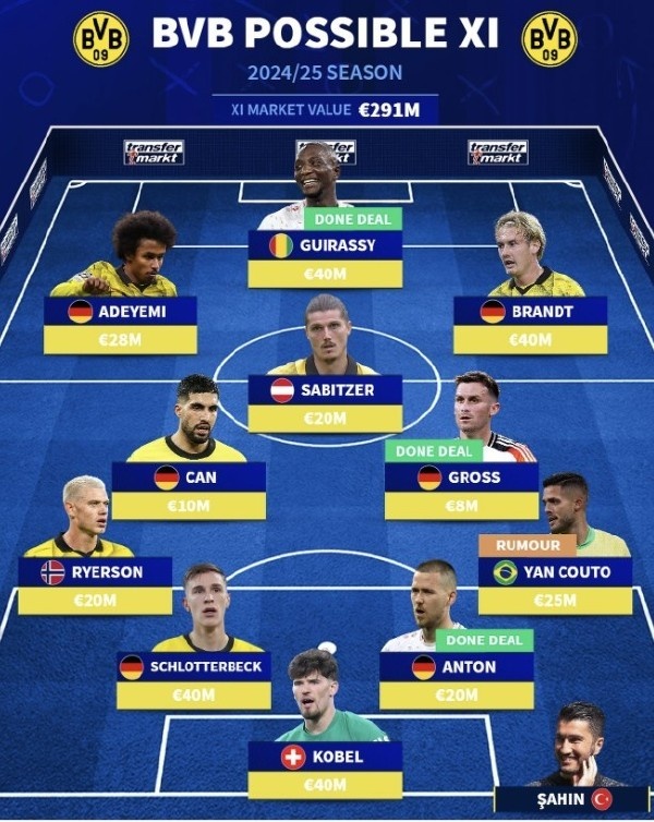 a. 欧冠亚军走了桑乔、胡梅尔斯和王牌中锋