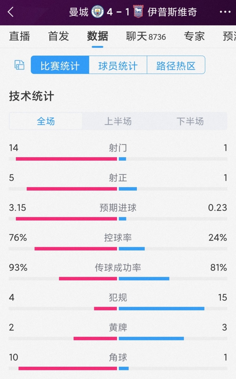 预期进球:2.38-0.97