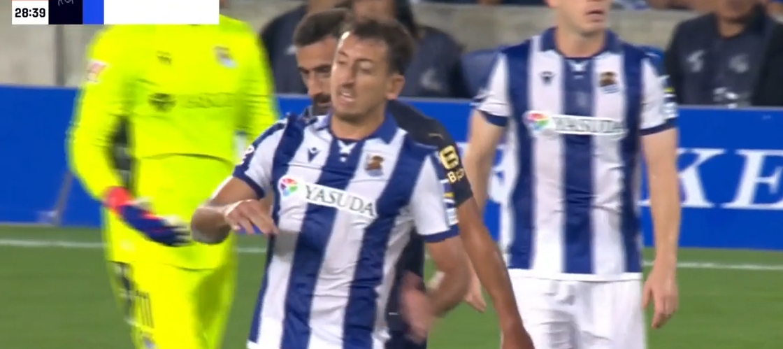本场比赛第26分钟,奥亚萨瓦尔与阿拉维斯球员贝纳维德斯拼抢,两人均痛苦倒地,裁判先是准备向贝纳维德斯出示黄牌。