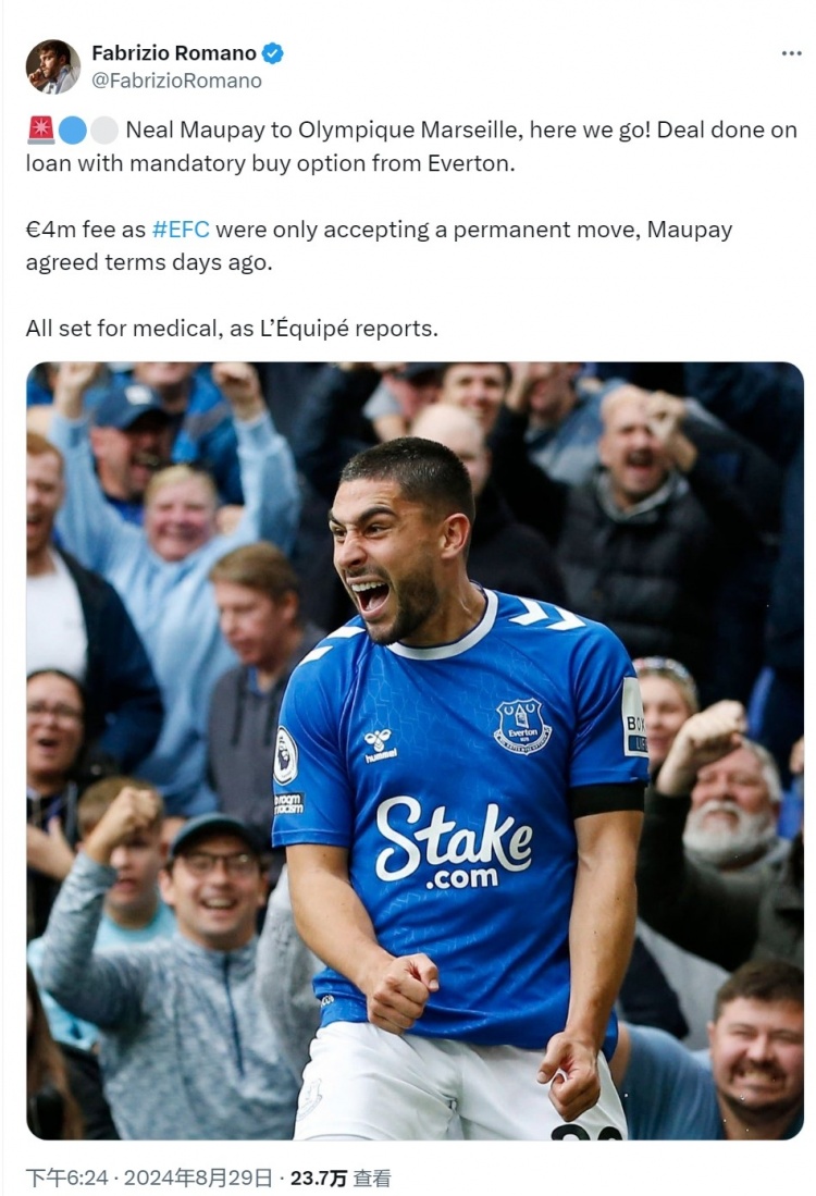 Here we go!罗马诺:莫派先租后买加盟马赛,转会费400万欧