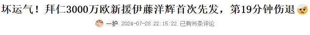 拜仁6月13日官宣伊藤洋辉(3000万欧),7月28日热身赛伊藤洋辉首次为拜仁先发便伤退,拜仁官方7月29日表示伊藤洋辉跖骨骨折将伤缺数周,德媒称是8-10周。