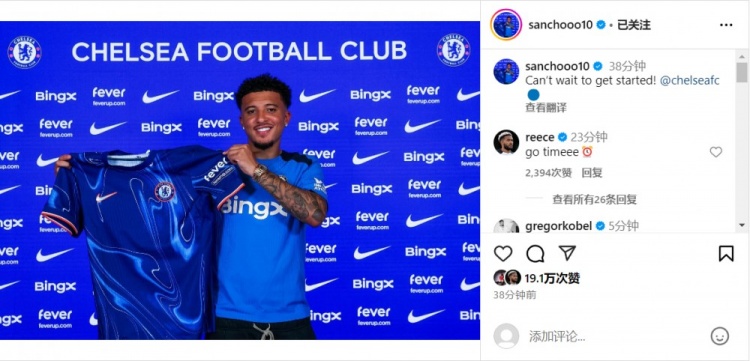 桑乔还为此配文:迫不及待开始了!@切尔西。