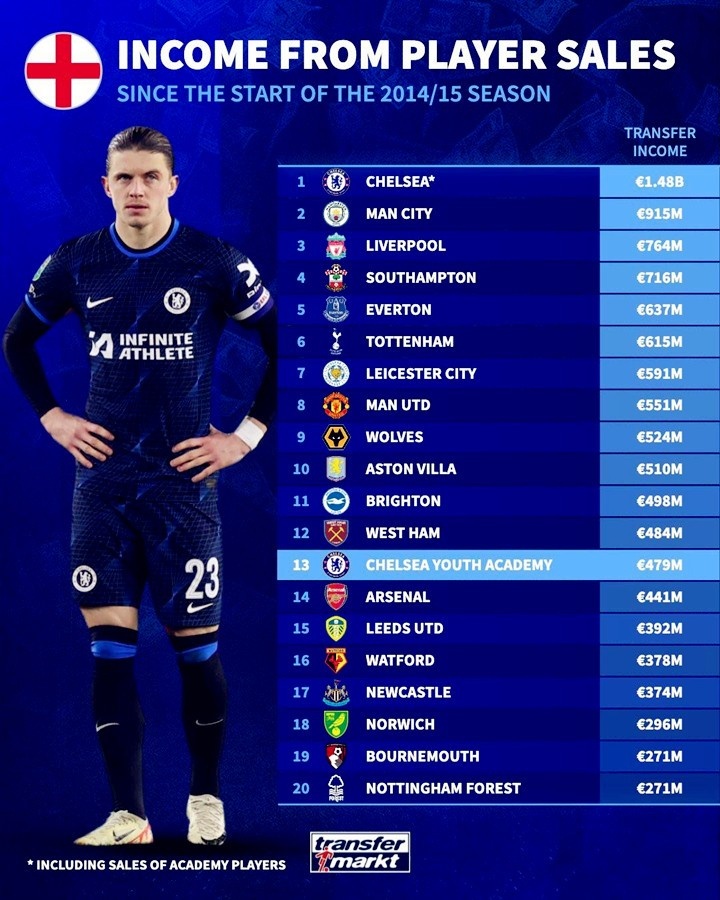 在六年五冠神迹的背后,曼城制服组的运营能力同样堪称顶级。英超班霸看重的球员鲜有水货,他们出售球星变现能力长期处于被低估的状态。自2014/15赛季以来,曼城已经通过出售球员赚取9.15亿欧元,仅次于切尔西。瓜迪奥拉上任后(2016夏窗)靠送走球员为俱乐部换来8.4亿欧元,同时期依然能排在英超第二位。