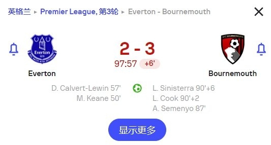 本轮联赛,埃弗顿2-3被伯恩茅斯大逆转,目前埃弗顿三战全负倒数第一