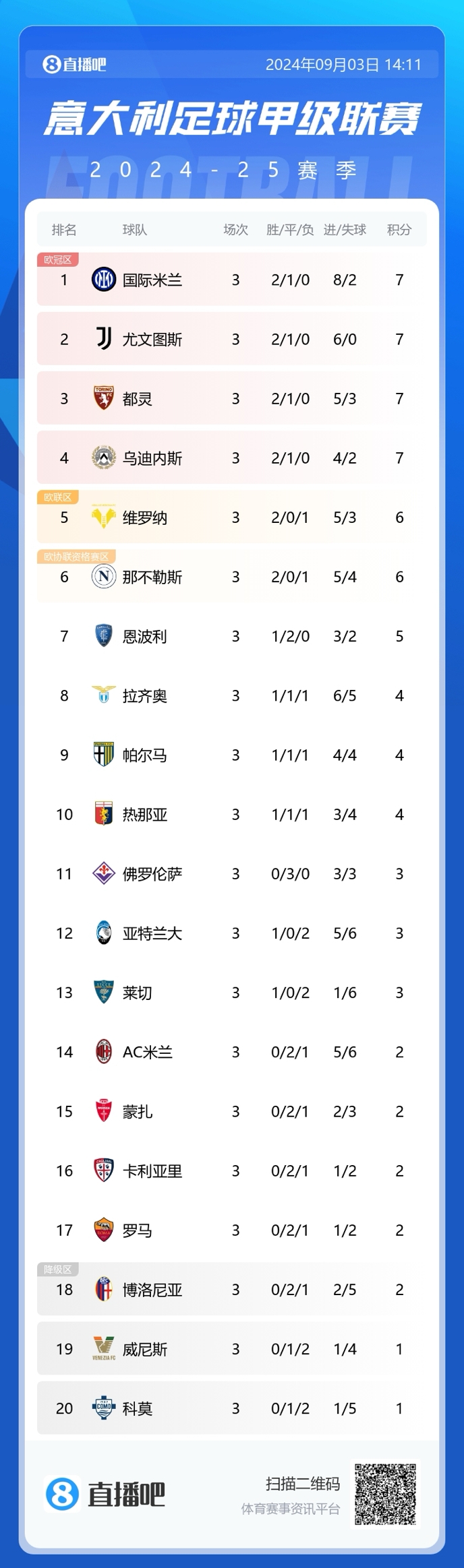 09月03日讯 新赛季意甲已经进行3轮,上赛季排名第5进军欧冠的博洛尼亚开局不利,3轮不胜只拿2分跌入降级区。