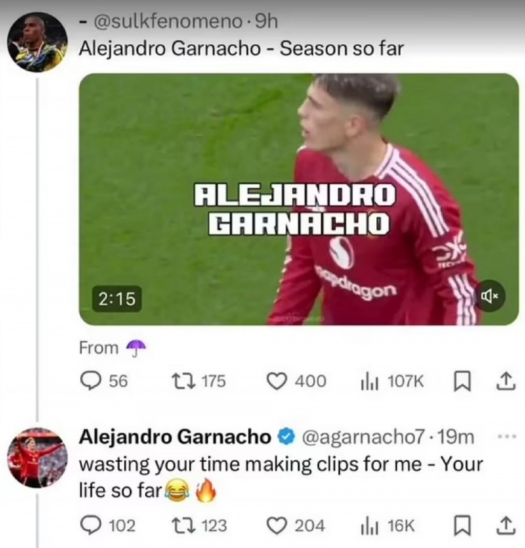 球迷晒失误集锦,加纳乔对线:浪费时间做我视频,这就是你的生活