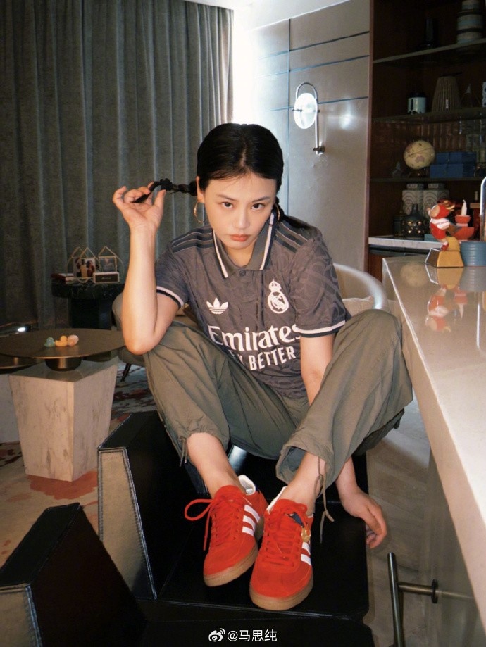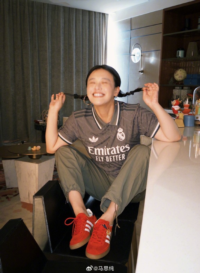 9月3日讯 最近,身为曼城球迷的马思纯在社媒晒出了自己身穿皇马球衣的九连拍。