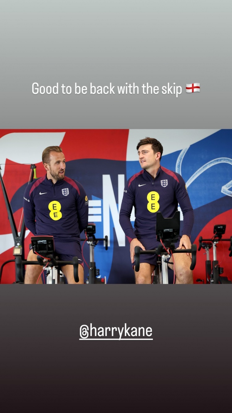 马奎尔社媒晒与凯恩合照:很高兴与队长一起回到英格兰队