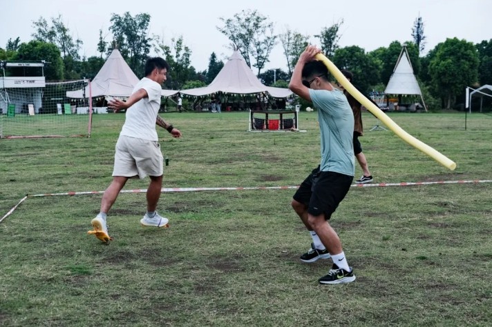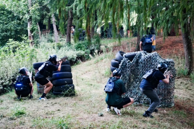 本次活动主要以团队间的游戏竞赛为主,为了让拓展活动更加有序地进行,在营地教练的指导下,全体成员分四组进行游戏。真人CS、蒙眼尖叫鸡、射箭PK、趣味拔河,这些项目不仅需要个人的勇气与毅力,更是考验团队成员间的默契协作。