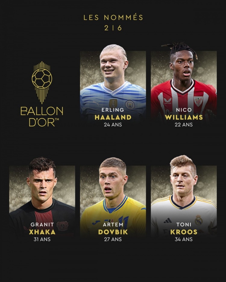 金球奖第一批候选名单:贝林、福登、巴尔韦德、大马丁、迪亚斯