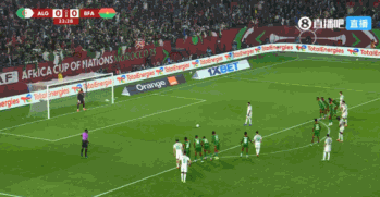 马赫雷斯主罚点球,骗过门将推射入网,阿尔及利亚1-0领先布基纳法索!