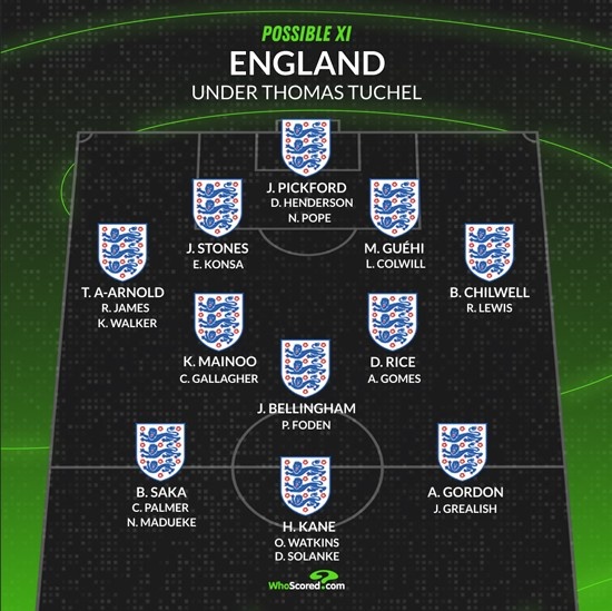 whoscored预测图赫尔主打三中卫,詹姆斯、奇尔维尔、芒特被启用