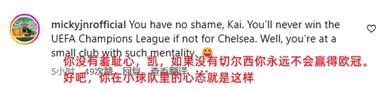 不过,不少切尔西球迷在哈弗茨社媒留言,认为他的庆祝行为是对老东家的不尊重。