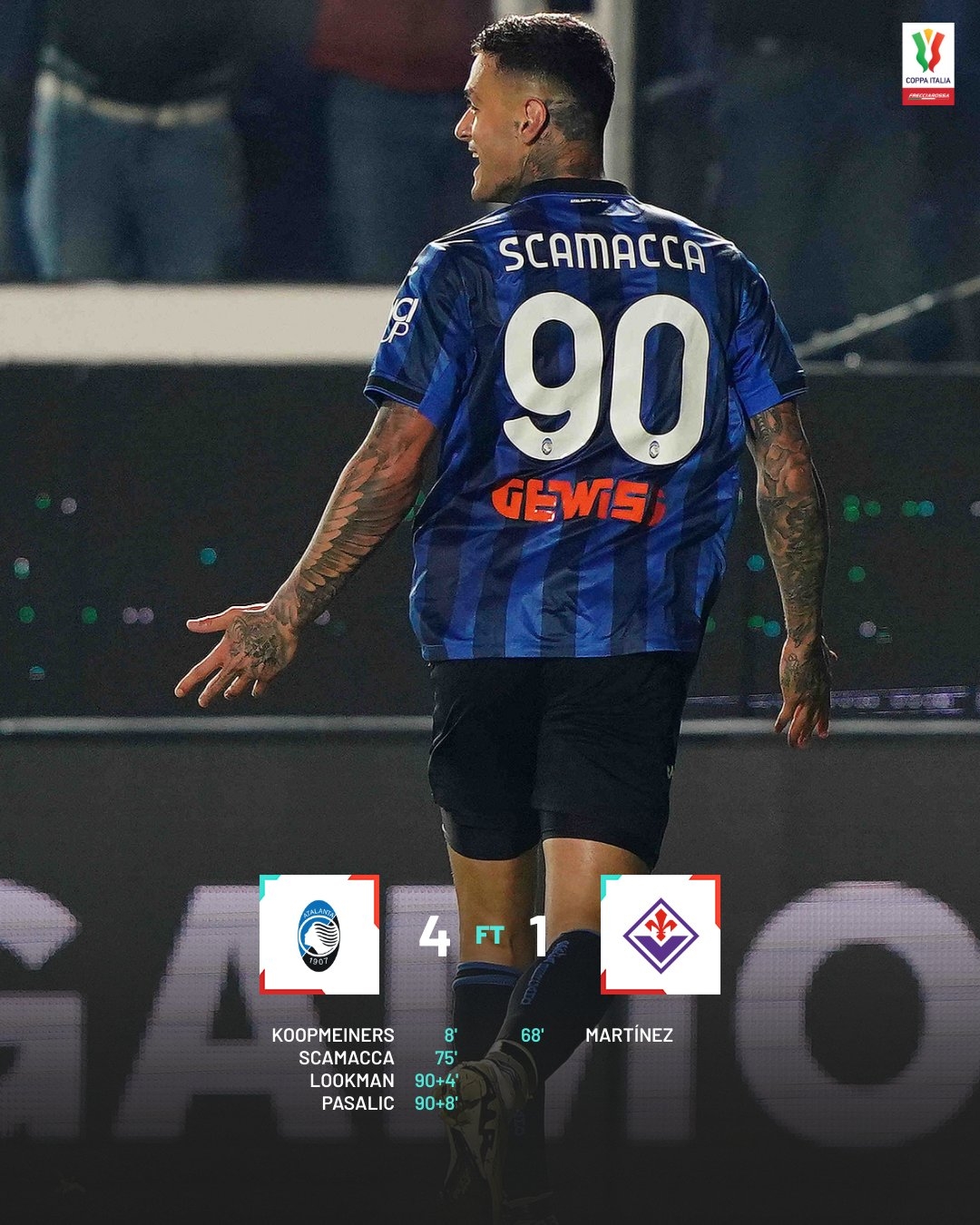 4月25日讯 意杯半决赛次回合,亚特兰大4-1佛罗伦萨总比分4-2晋级。