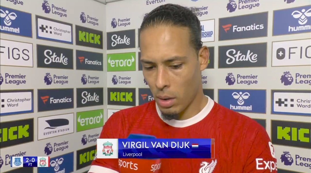 04月25日讯 英超第29轮补赛,利物浦0-2埃弗顿。赛后范迪克接受天空体育采访。