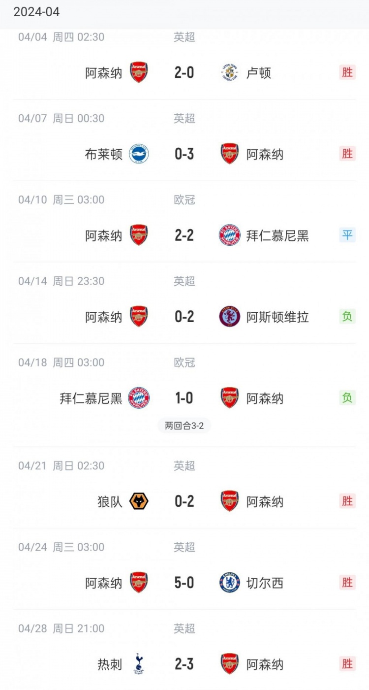 满意吗?枪手结束4月魔鬼赛程:6轮15分&胜蓝军热刺 欧冠不敌拜仁