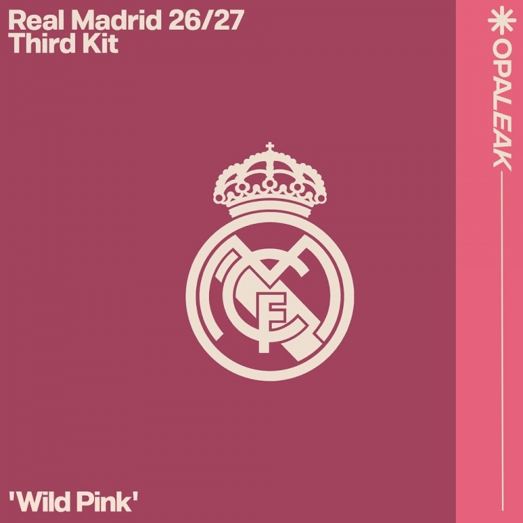 10月13日讯 据球衣信息网站Footy Headlines消息,皇马2026-27赛季的第三客场球衣将重新采用粉色作为主色调。